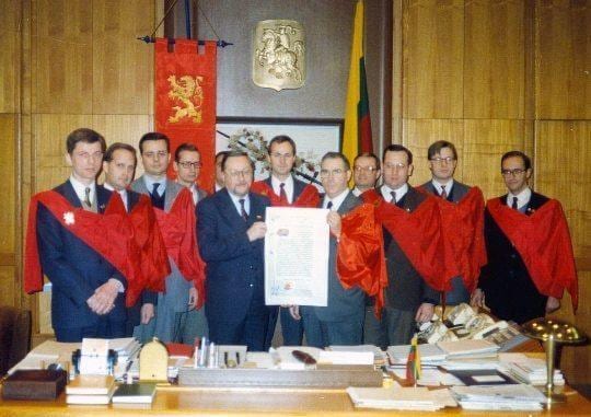 A delegation composed of eleven members of the different TFPs, led by Dr Caio V. Xavier da Silveira, director of the TFP-bureau in Paris, personally delivered to President Vytautas Landsbergis, on 4 December 1990 in Vilnius, the microfilm of the monumental petition drive.