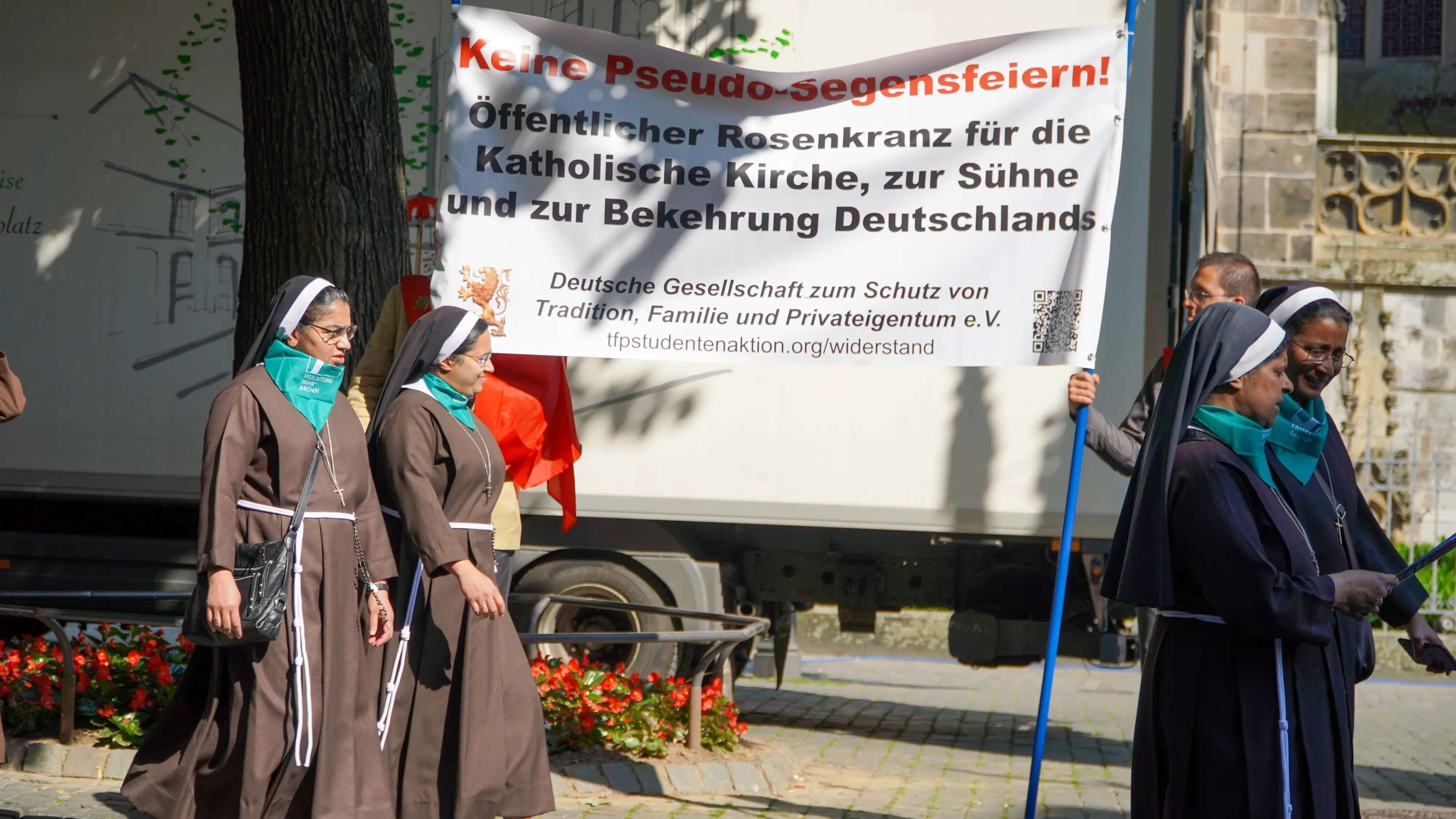 After having visited 80% of all parishes in Luxembourg, whose Card. Hollerich, is also the General Relator of the next Synod, the volunteers held another public rosary in front of the Aachen Cathedral and began a massive distribution on the occasion of the Aachen pilgrimage, which gathers hundreds of thousands of faithful every 7 years.