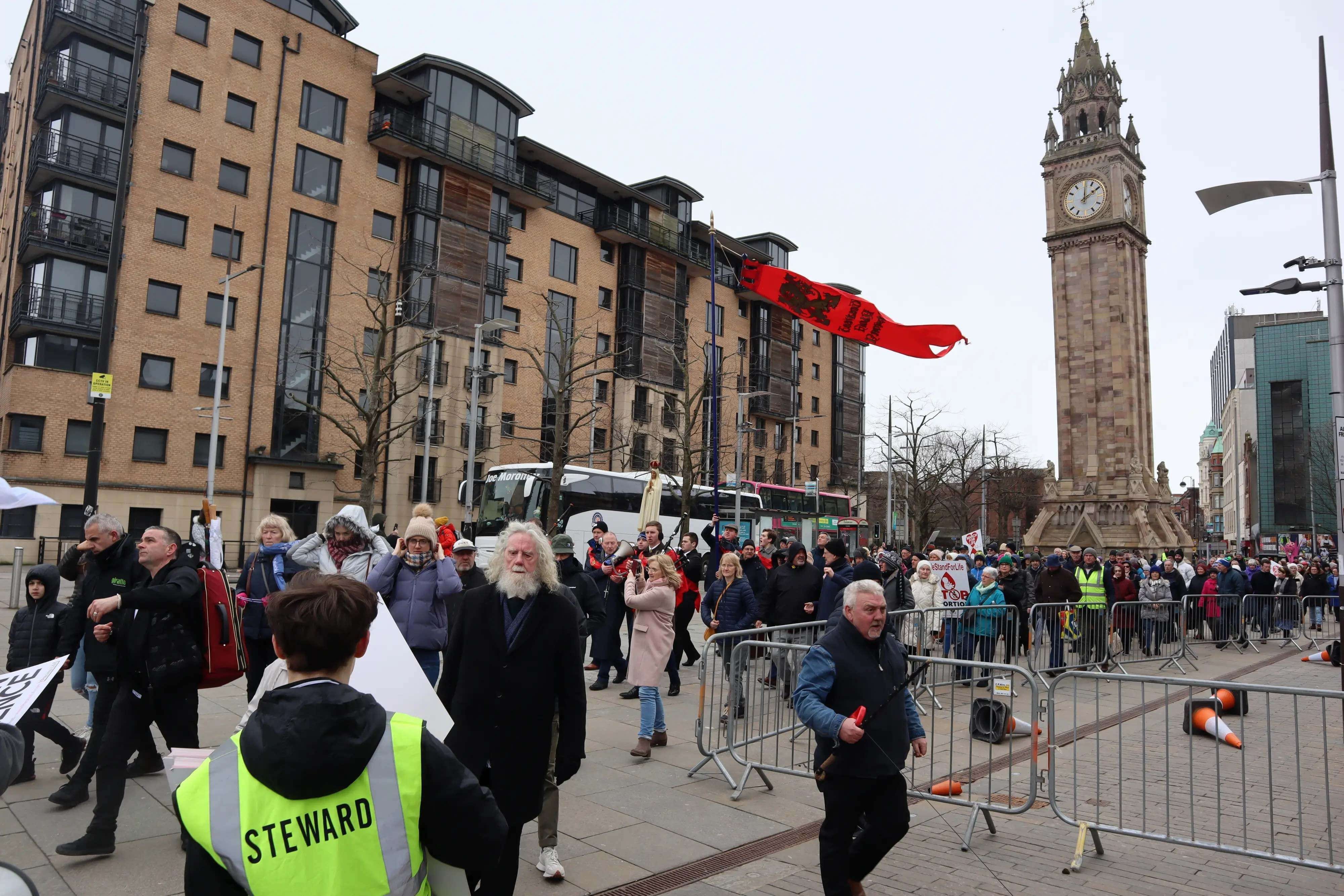 Despite atrocious weather conditions, large numbers of people still braved the wind, rain and snow to march through the City Centre.